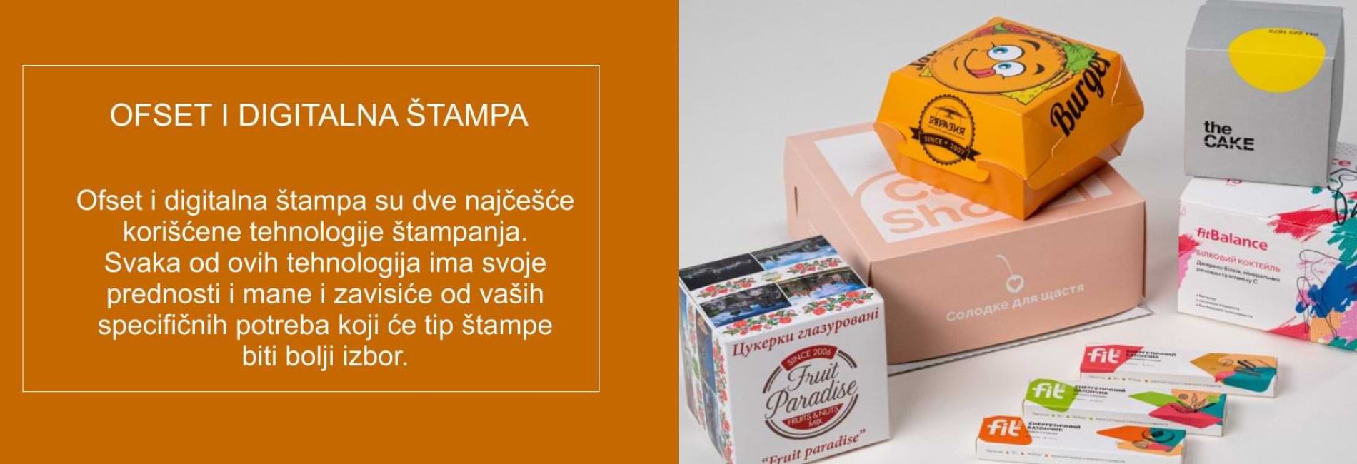 Ofset štampa je tradicionalna tehnologija štampanja koja koristi metalne ploče za prenos slike na papir. Ova tehnologija nudi visok kvalitet štampe, detaljan prikaz i bogatu paletu boja i primenu posebnih, metalik i fluo boja po Pantone skali. Ofset štampa se obično koristi za velike tiraže štampanih materijala, jer ima niže troškove po primerku što je čini povoljnijom za veće serije štampe.
